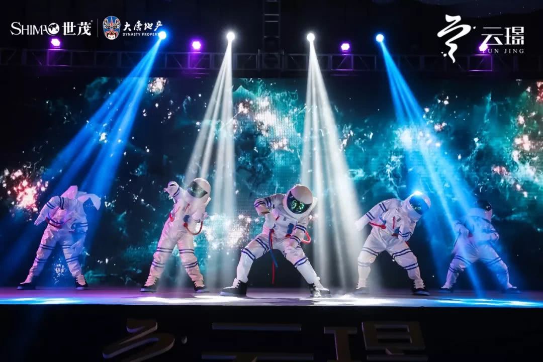 本次发布会不仅以科技人居的概念艳惊四座,更在细微处见真章,从一而终的太空风视觉体、模特静态展、人屏互动舞蹈、航天服表演、焕新DNA启动仪式还有抽奖环节等等,无不展现了世茂的别出心裁与人文匠心。