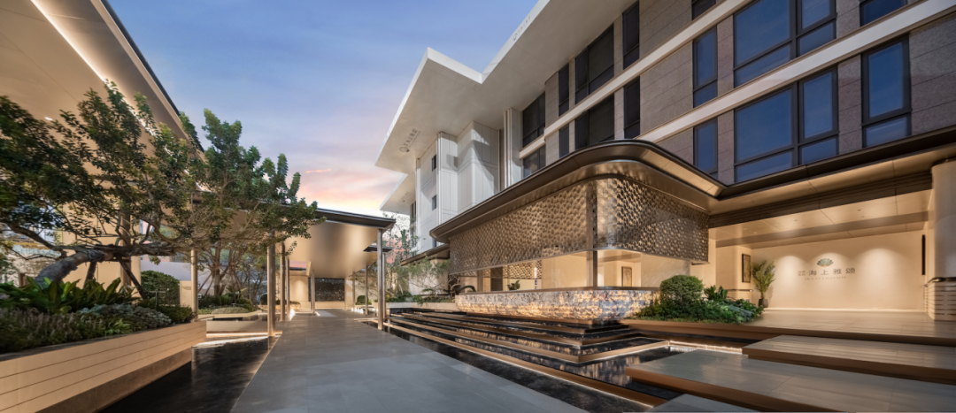 l约51米恢弘门庭:融合金属框架、通透玻璃与发光潘多拉奢石,配合海洋元素水景,让归家成为每日的第一次度假