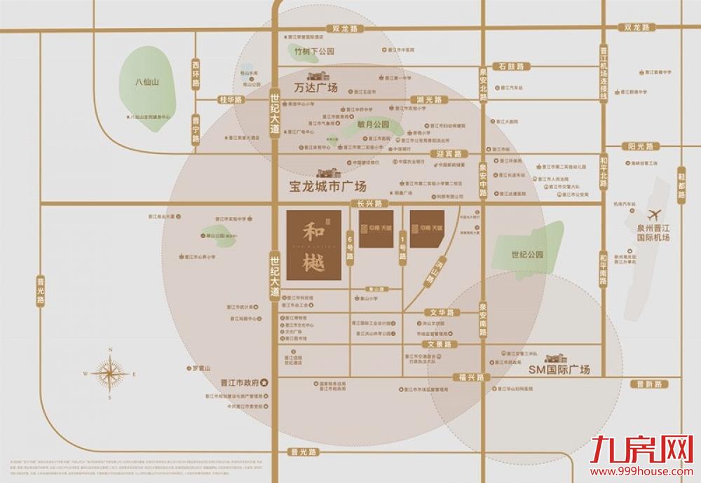 | 自驾 | 周边道路:项目东侧,晋江最高规格的一级快速路——世纪大道,双向十车道、全长约22公里,北接泉州大桥南立交,向南延伸至安海。项目与宝龙城市广场仅一路之隔,项目向北可达万达广场、泉州主城浦西万达商圈;向东可达晋江国际机场、SM城市广场;向南可达晋江市政府、晋江动车站;向西可达八仙山及其全民健身中心; |